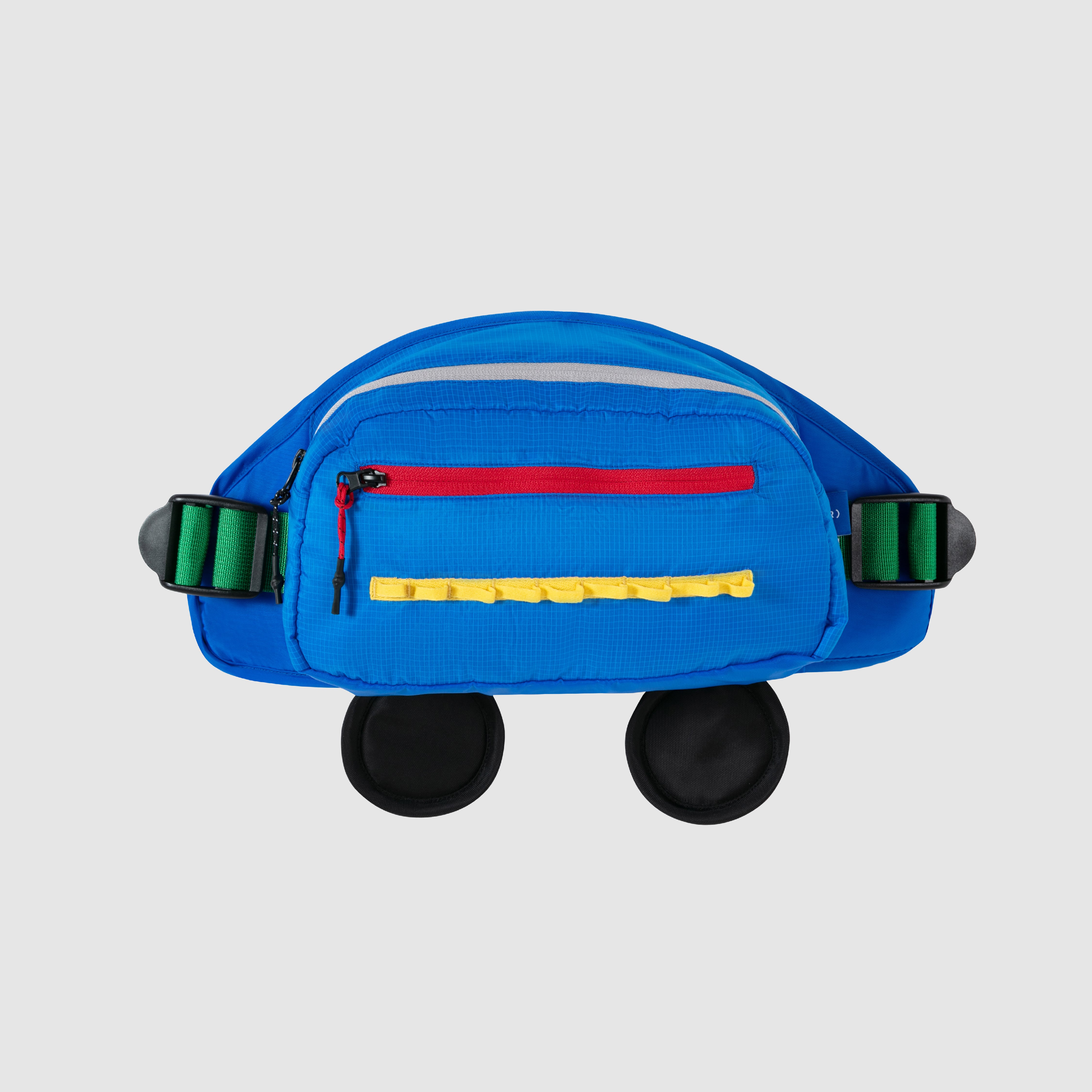 グラフィックデザイナー佐々木俊さんのカーから着想を得た、CAR(カー)ウエストバッグ。鮮やかなブルーをベースにレッド、グリーン、イエローを効かせたマルチカラー仕様。どこかレトロで軽快なムードを感じさせます。