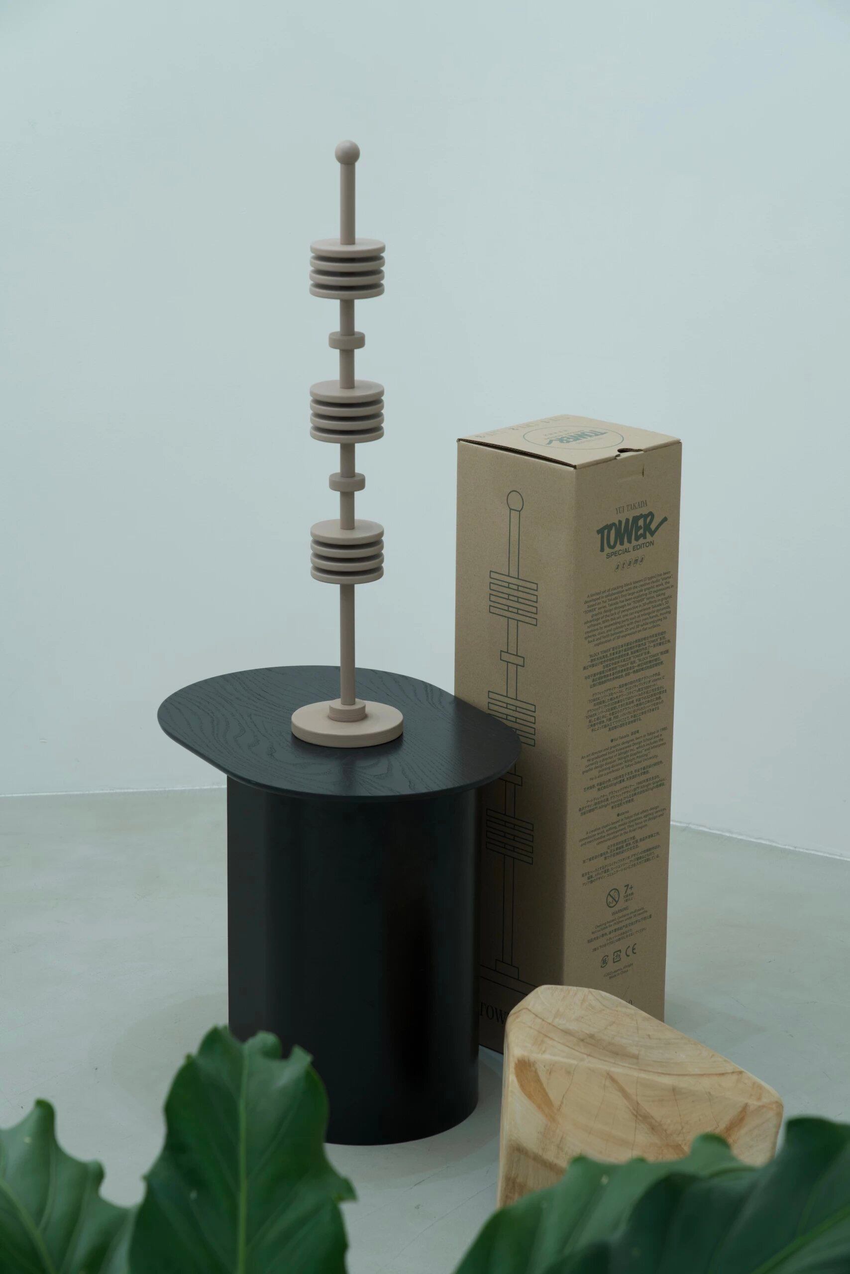グラフィックデザイナー髙田唯の初の大型グラフィック作品「TOWER」シリーズをベースに、クリエイティブスタジオ「atama」と共同開発した積み木タワー(3タイプx限定100セット)